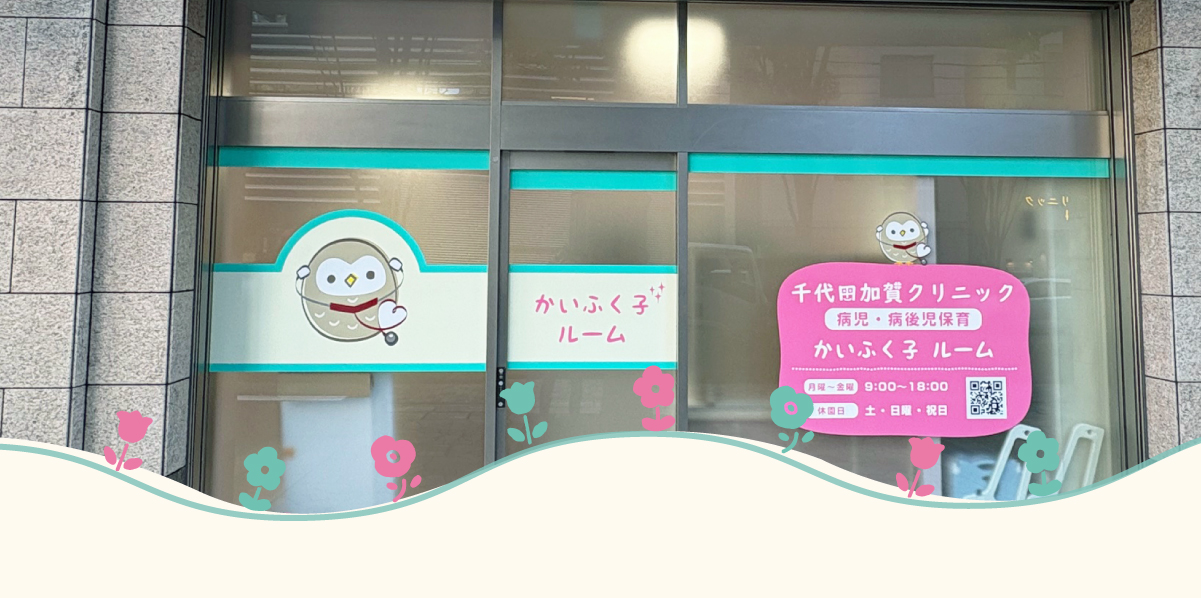 かいふく子ルームは、お子様の感冒、発熱、胃腸炎、インフルエンザなど体調がわるいときに、お忙しい保護者に代わって小児科専門医と看護師、保育士が大切なお子様のケアをさせていただく病児病後児保育施設です。